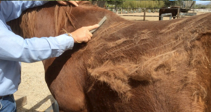 - c’est un moyen de contrôler l’état de santé du cheval, en détectant par exemple les zones sensibles, chaudes, les éventuelles blessures ou problèmes cutanés. L’inspection se réalise autant avec la brosse que la main,