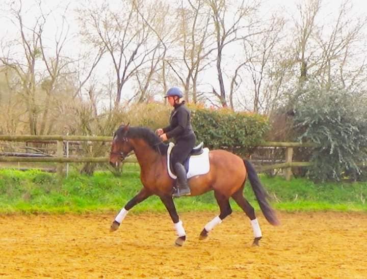 Vous pourrez aussi travailler sur un petit cercle l’exercice vu en longe, pli intérieur, croisement du postérieur intérieur vers l’extérieur.