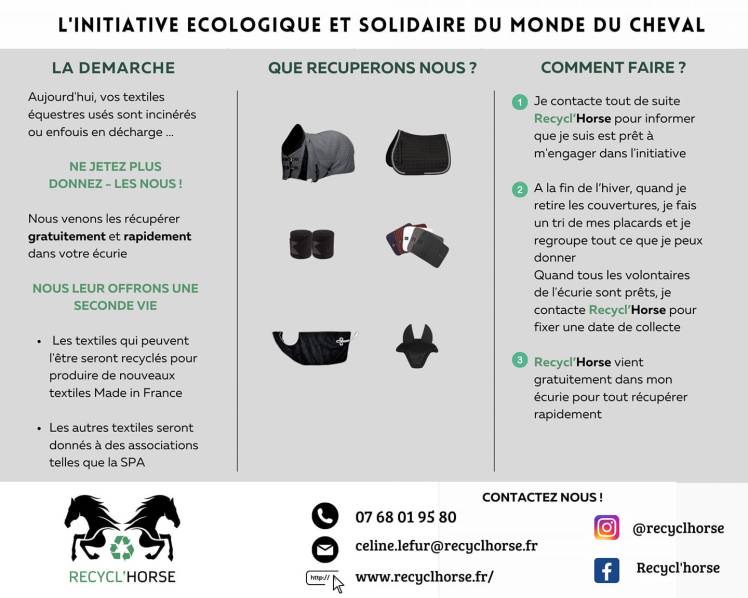 Recycl’Horse propose un service de recyclage de textiles équestres.