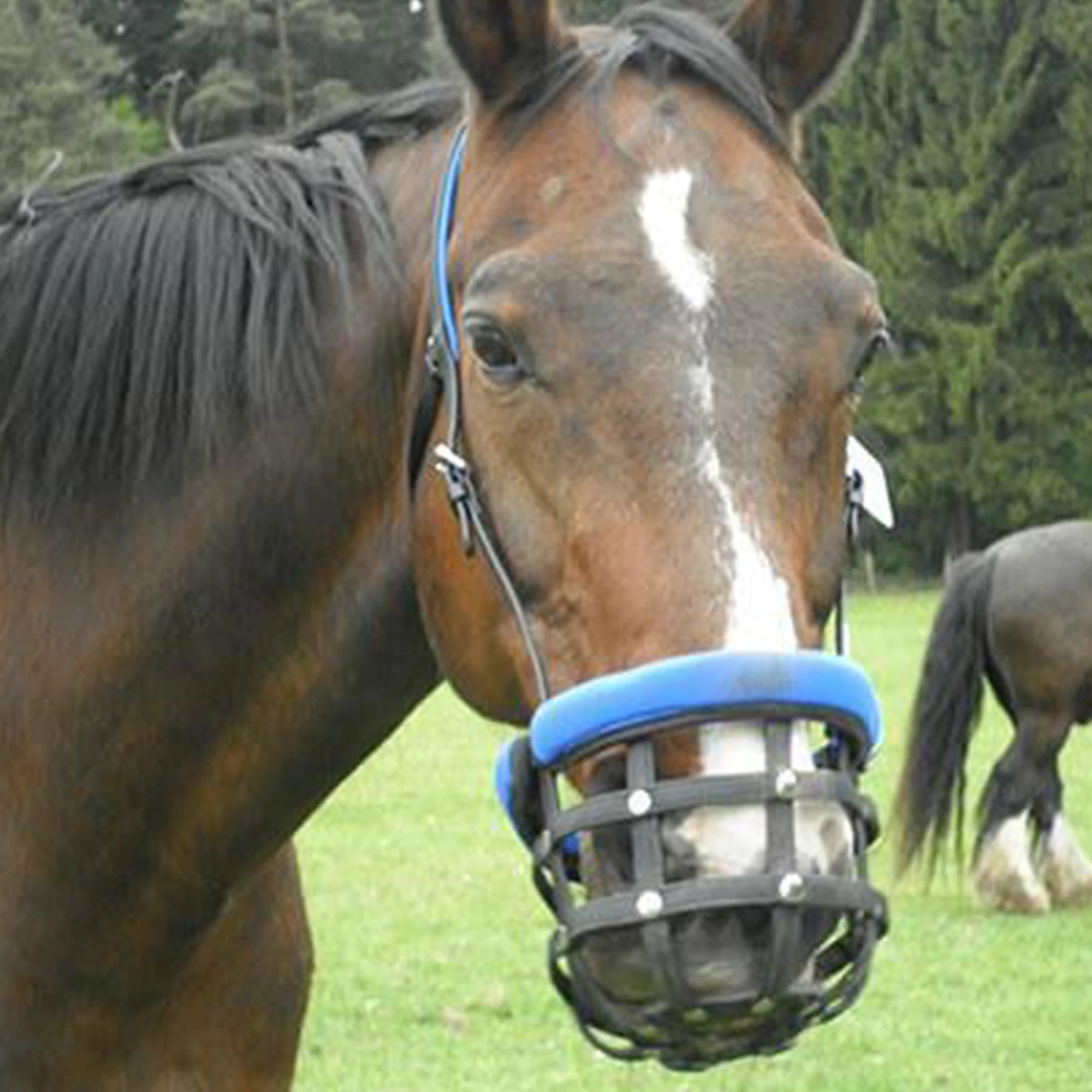 Du coup, je me suis résolue à essayer les paniers « entrée de gamme » qui sont d’anciens paniers médicaux redessinés en panier de régime. Le mien est un Harry’s Horse. Au début, je pensais qu’il serait mon panier de secours le temps que je répare l’EasyGrazer, mais c’est finalement devenu le panier principal parce que je l’ai finalement customisé pour le rendre plus confortable : j’ai agrandi le trou pour créer une ouverture ronde de 5 cm (comme l’EasyGrazer) et j’ai coupé les deux lanières qui tombaient devant les naseaux, ce qui le rend plus respirant.