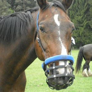 J’ai un poney « easy keeper », donc à la belle saison, je l’équipe d’un panier. Mais pas nécessairement tout le temps, car on gère l’herbe au fil. Donc dépendant du temps, de l’herbe et de son poids, j’ajuste avec le panier.