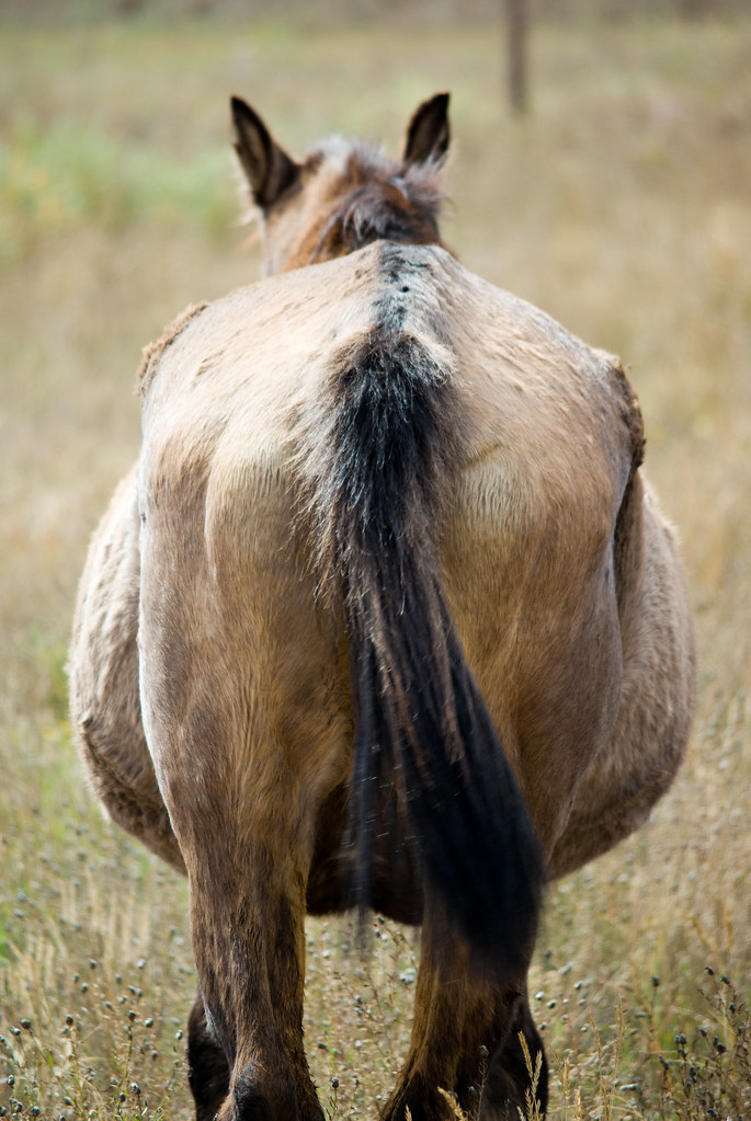 Le cheval avec un ventre de foin peut avoir les côtes apparentes, une ligne de dos faible, un pelage terne et rêche et avoir des gazes. Il parait gros, mais il ne l’est pas.