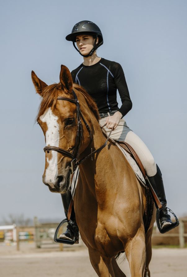 Les leggings en laine mérinos peuvent aussi être utilisés comme première couche, sous un pantalon d’équitation.